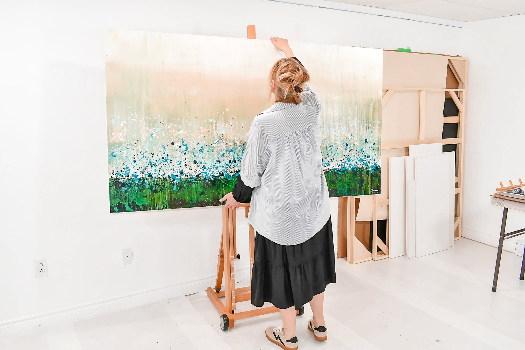 I shifted from singing in rock bands to creating minimalist abstract art inspired by the Baie-des-Chaleurs region. Now, I let colour and emotion guide my painting, just as I did with music, aiming to create spaces for reflection.